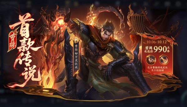 3、皮肤价格:10月6日0:00至10月12日23:59期间,玩家可选择以990点券的价格购买曹操万灵伏威超值皮肤礼包,该礼包含有皮肤本体以及个性按键,并支持绑定点券购买。此时购买是最为便宜的。同样的,10月13日0:00后该款皮肤将恢复至原价,也就是1688点券,但第一周价格是1350点券。