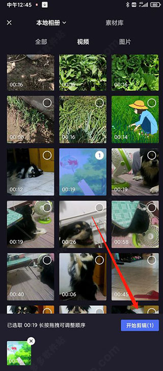 2、第二步:在弹出选项中选择本地的视频文件,点击开始剪辑按钮。
